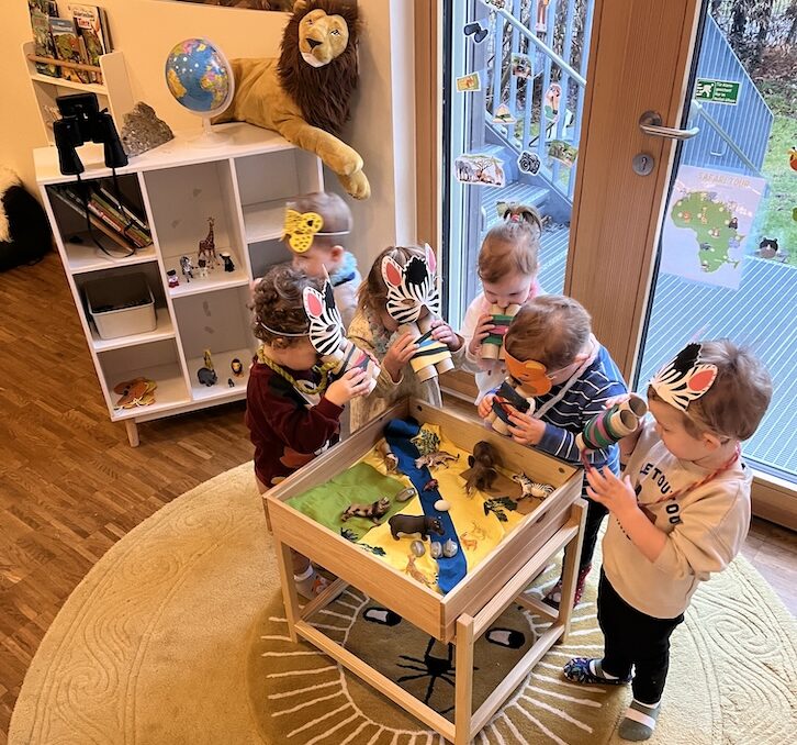 Im Oberlin Kindergarten zieht derzeit ein ganz besonderes Abenteuer ein: Unser neues Jahres-Thema „Safari“ begleitet nun alle Gruppen durch den Kindergartenalltag. Auch die Faultiergruppe, eine unserer Krippengruppen, begibt sich mit viel Neugier auf Entdeckungsreise und nimmt dabei den Kontinent Afrika genauer unter die Lupe.