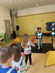 Dann zeigte er uns den ADACUS-Song und wir tanzten gemeinsam dazu. Dabei haben wir ganz schnell die wichtigsten Regeln für den Straßenverkehr gelernt. Besonders viel Spaß hatten wir beim Üben, wie man sicher eine Straße überquert. Abwechselnd als Autofahrer oder Fußgänger verkleidet, sind wir dabei auf Straßen gefahren und haben an roten Ampeln oder Zebrastreifen gestoppt. Als Fußgänger haben wir uns vergewissert, dass die Autos links und rechts neben uns am Zebrastreifen stehen bleiben oder geduldig auf grünes Licht der Fußgängerampel gewartet. Stolz, bekamen wir zum Abschluss sogar noch eine Urkunde und ein High Five von ADACUS.